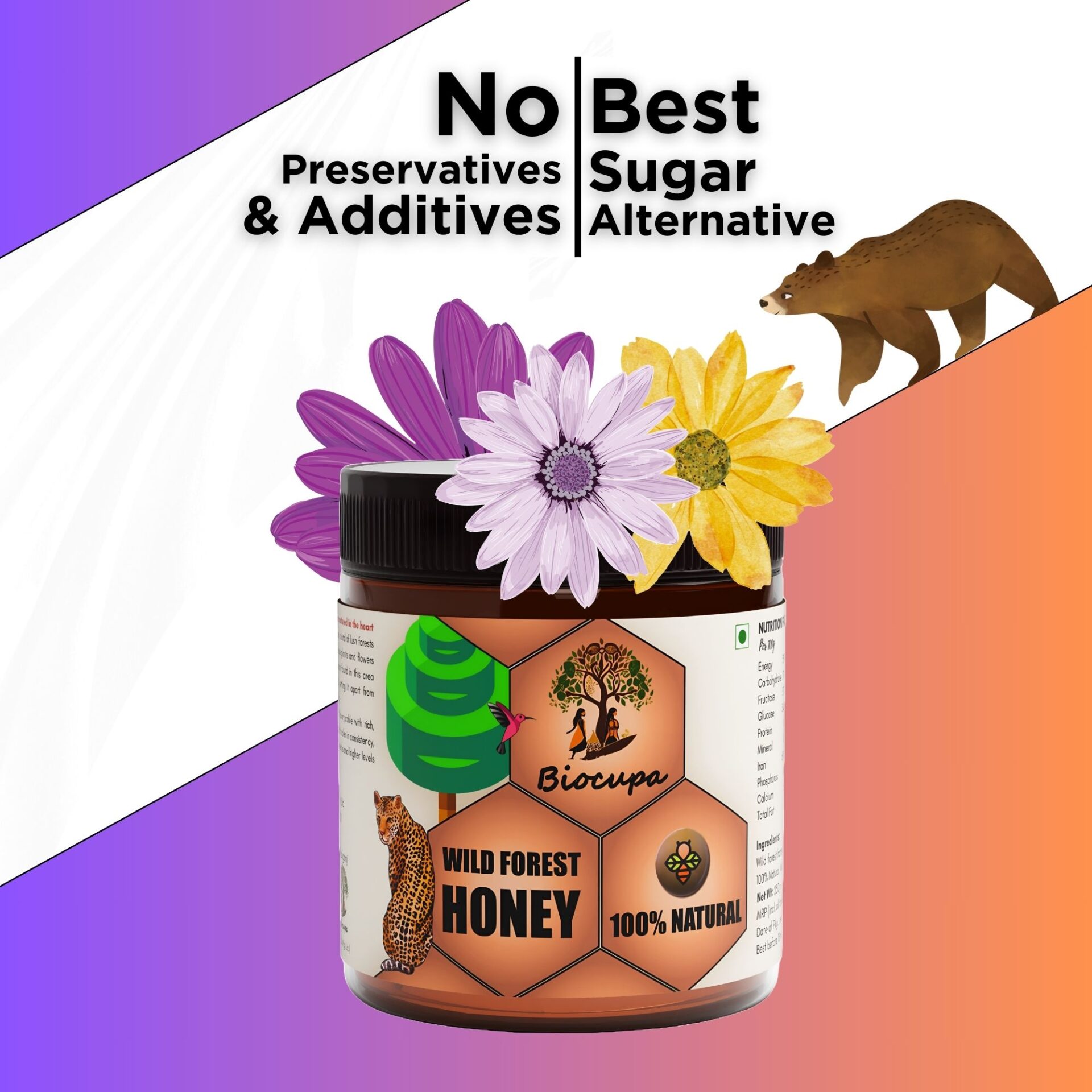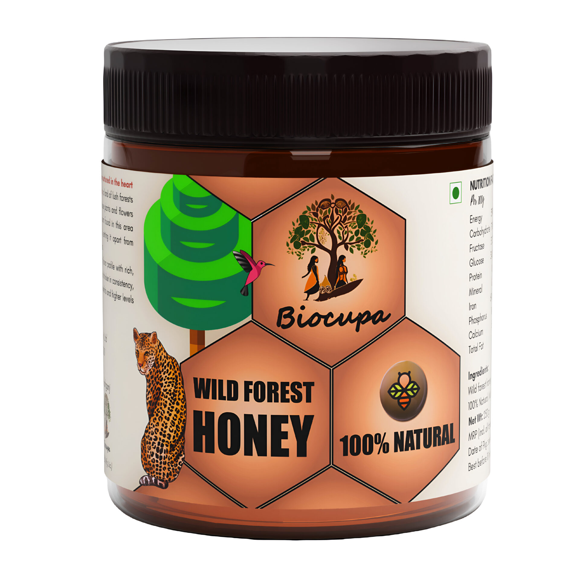 Biocupa Wild forest honey is a unique and special type of honey produced by bees foraging in naturally occurring, unmanaged forests. Unlike commercially produced honey, wild forest honey comes from bees pollinating a diverse range of wildflowers, trees, and other plants growing in the untouched ecosystem.